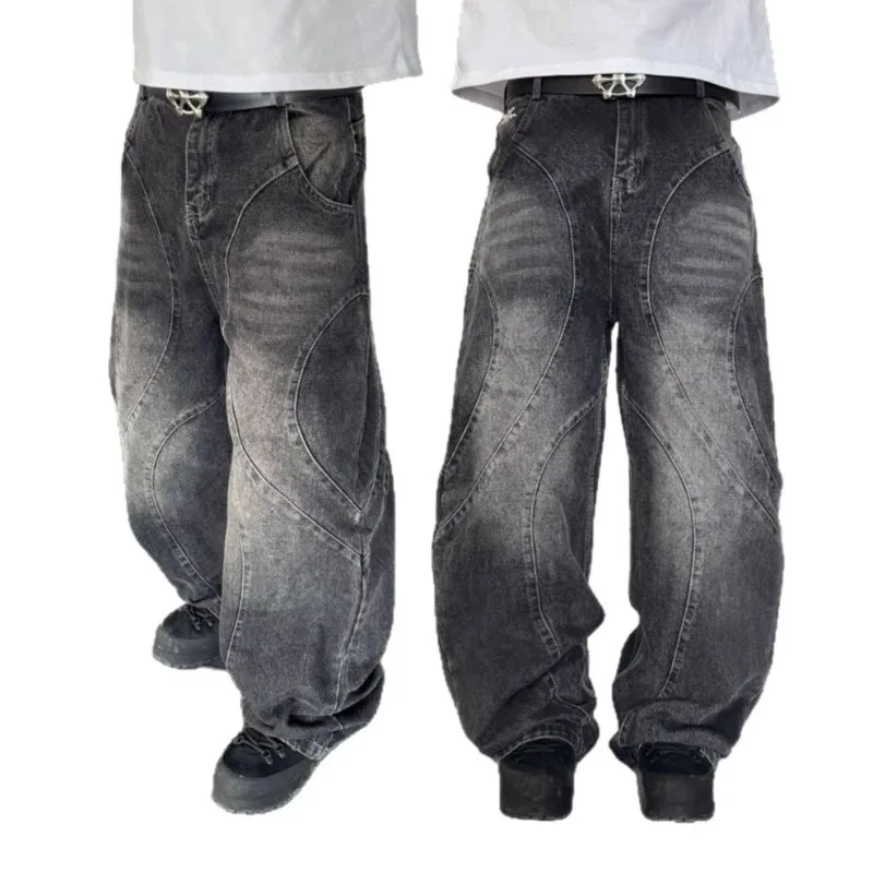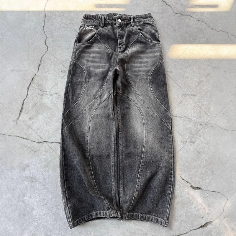 Deeptown Y2k Gothic Punk Washed Women Jeans Harajuku Wide Leg American Vintage Men Denim Pants Baggy Hip Hop Streetwear Trousers